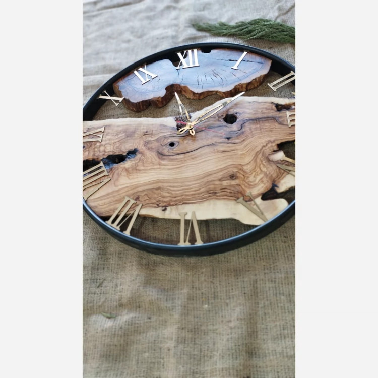 👈ساعت روستیک ساخته شده با چوب زیبای زیتون منحصر به فرد و تک نسخه✅