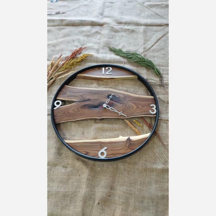 🔴ساعت چوبی روستیک چوب سنجد دور طلایی✅