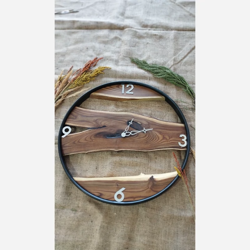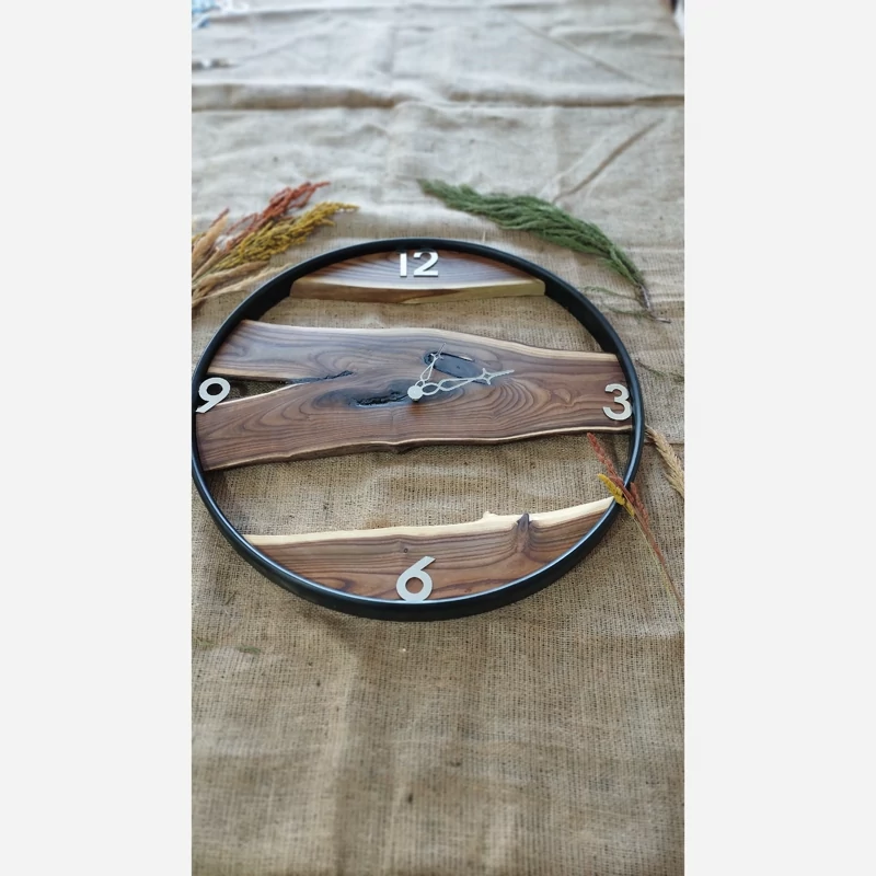 🔴ساعت چوبی روستیک چوب سنجد دور طلایی✅