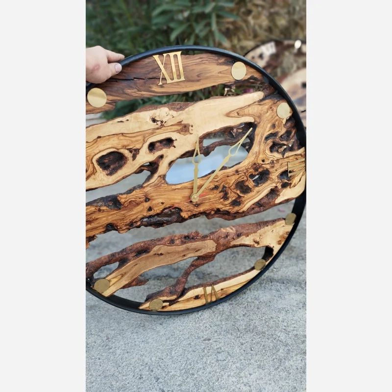 👈ساعت روستیک ساخته شده با چوب زیبای زیتون کاملا دست ساز ✅ 👈تکه ای از روح و اصالت طبیعت در خانه شما🪵✅
