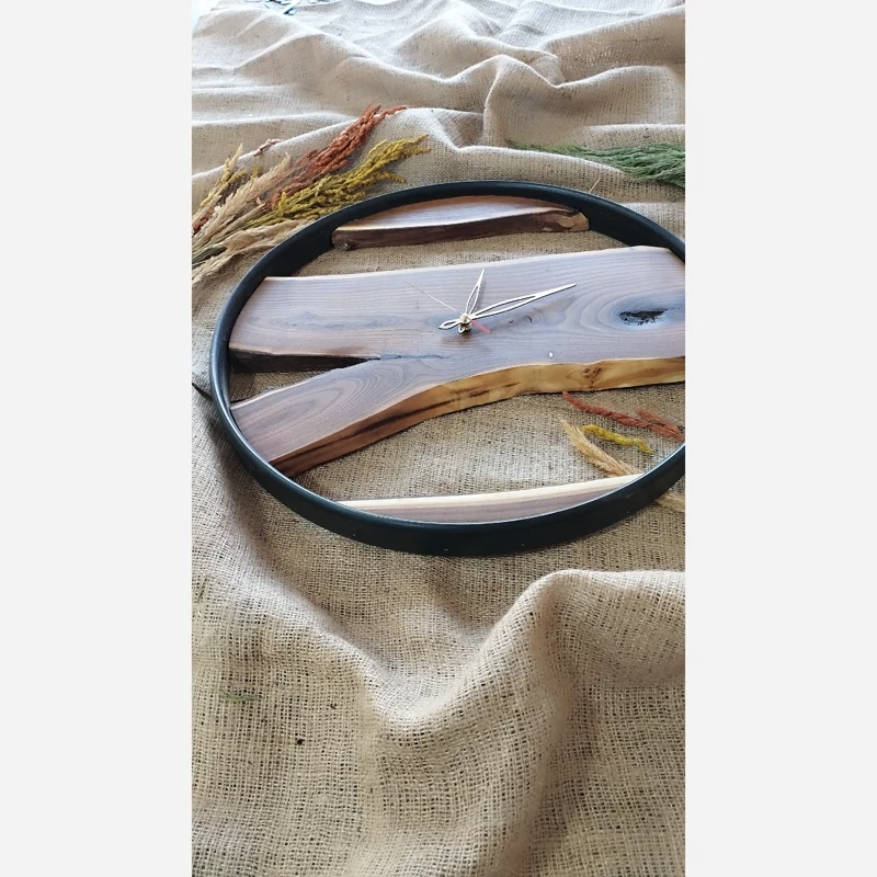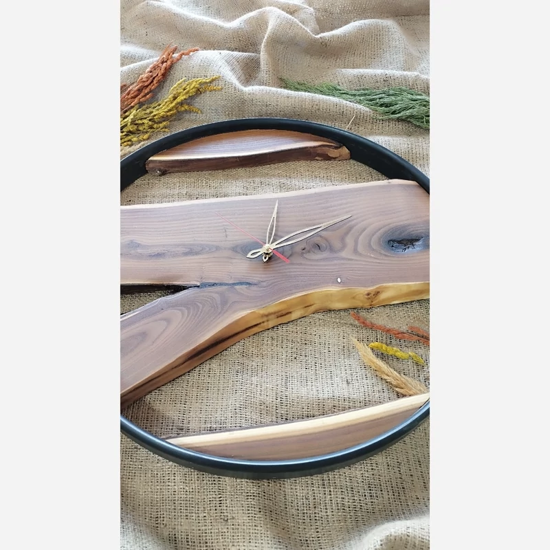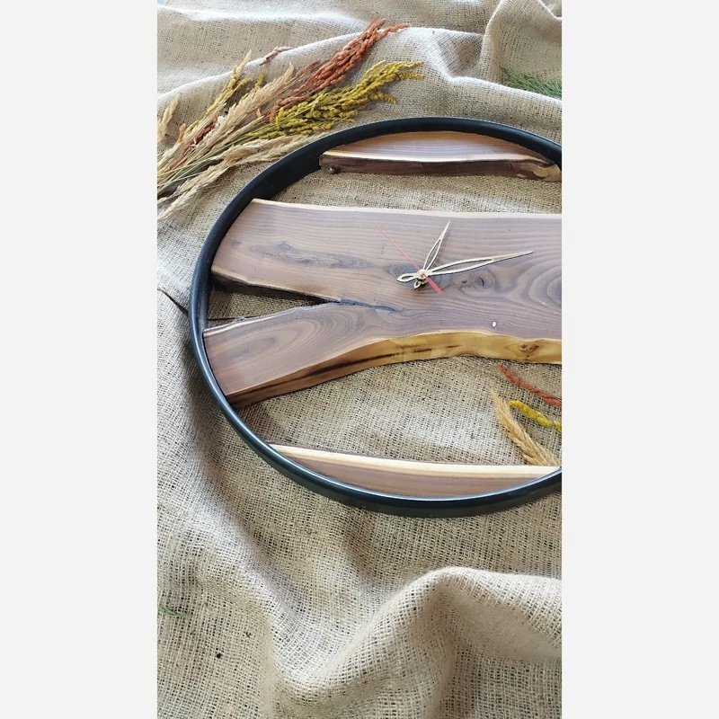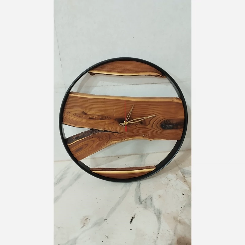 🔴ساعت چوبی روستیک چوب سنجد دور طلایی✅