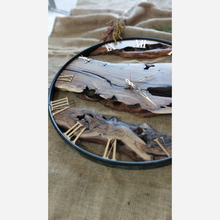 👈ساعت روستیک ساخته شده با چوب زیبای زیتون منحصر به فرد و تک نسخه✅