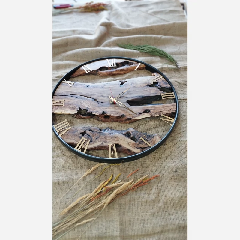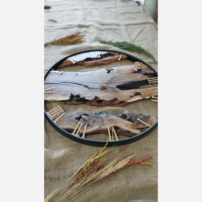 👈ساعت روستیک ساخته شده با چوب زیبای زیتون منحصر به فرد و تک نسخه✅