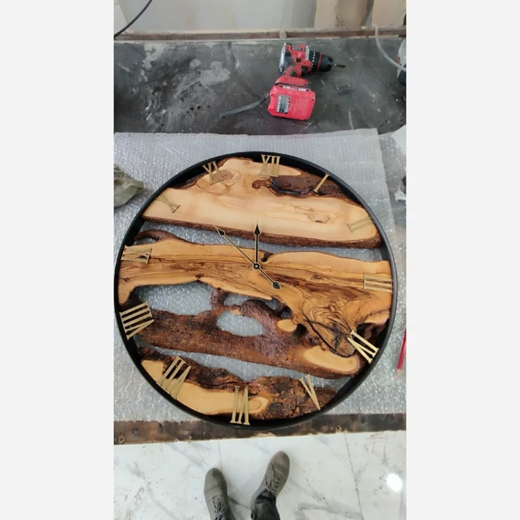 👈ساعت روستیک ساخته شده با چوب زیبای زیتون کاملا دست ساز و تک نسخه✅